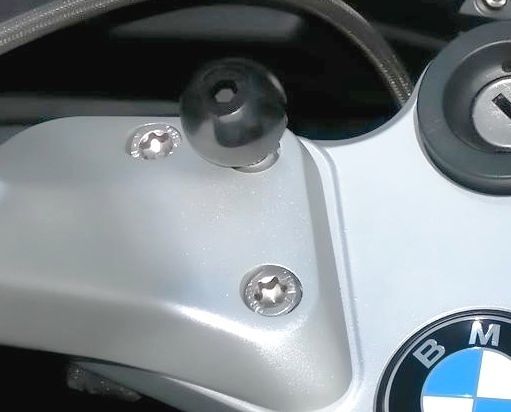 To fit this mount, simply remove one M8 screw from the handlebar and replace it with the hollowed rubber coated 1" ball and the M8 screw mounting system.