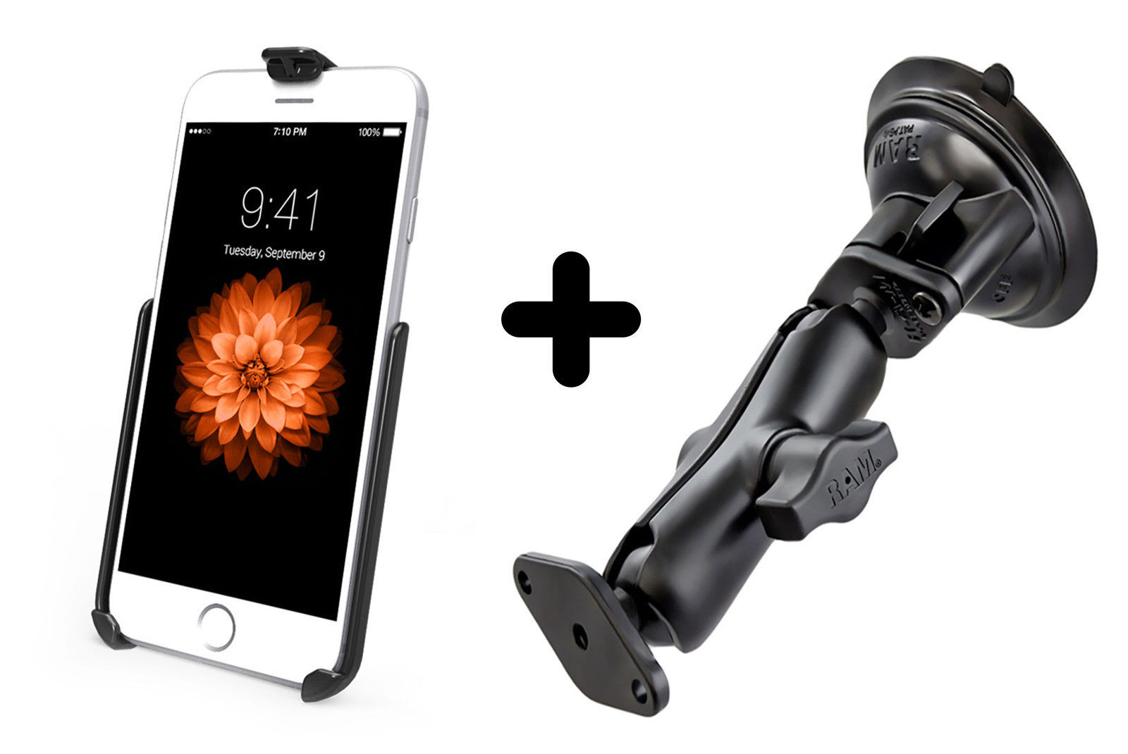 Reviews RAM-B-166-AP18U-P RAM Vehicle Suction Cup Mount EZ-Roll'r Cradle iPhone 6 6S 7 /assets/thumb/RAM-B-166-AP18U-P.jpg?20200714030506 110The RAM-B-166-AP18U is a full kit that will allow you to mount an iPhone 6 or 6s (without a case, skin or sleeve) onto a suction-compatible surface.